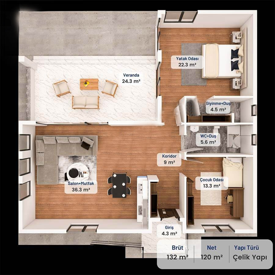 132 Metrekare Betonarme Ev